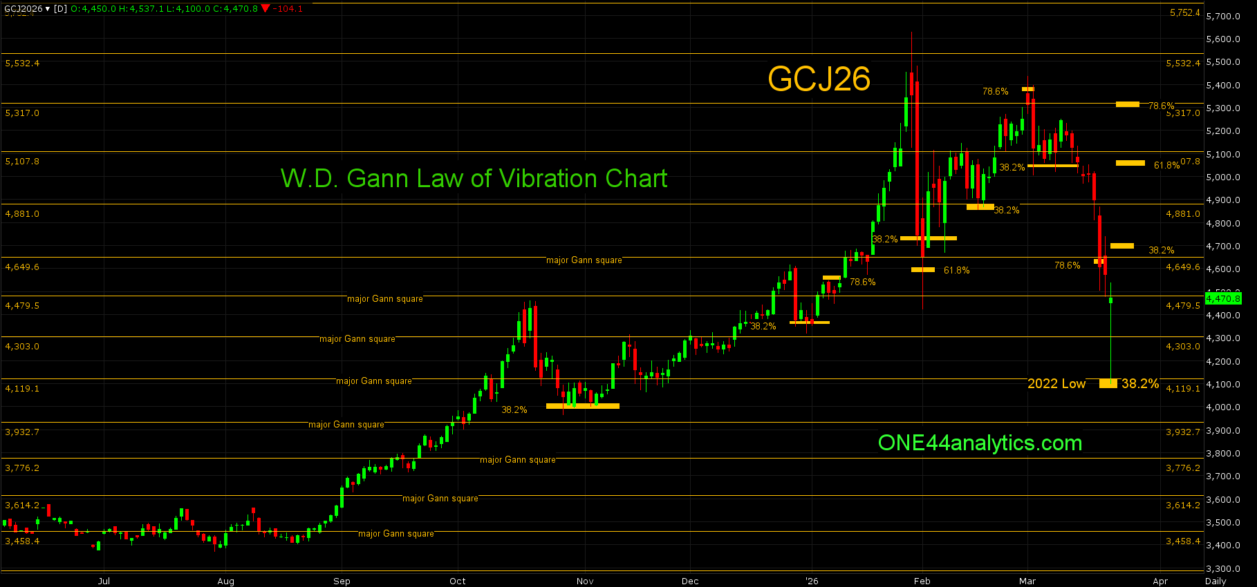 Our goal is to not only give you actionable information, but to help you understand why we think this is happening based on pure price analysis with Fibonacci retracements, that we believe are the underlying structure of all markets and Gann squares.